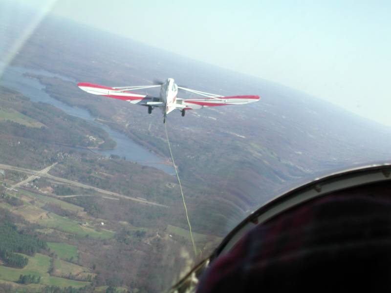 Instructional flight (Schweizer 2-33) on tow in central Massachusetts. The tow plane is a Piper Pawnee. |