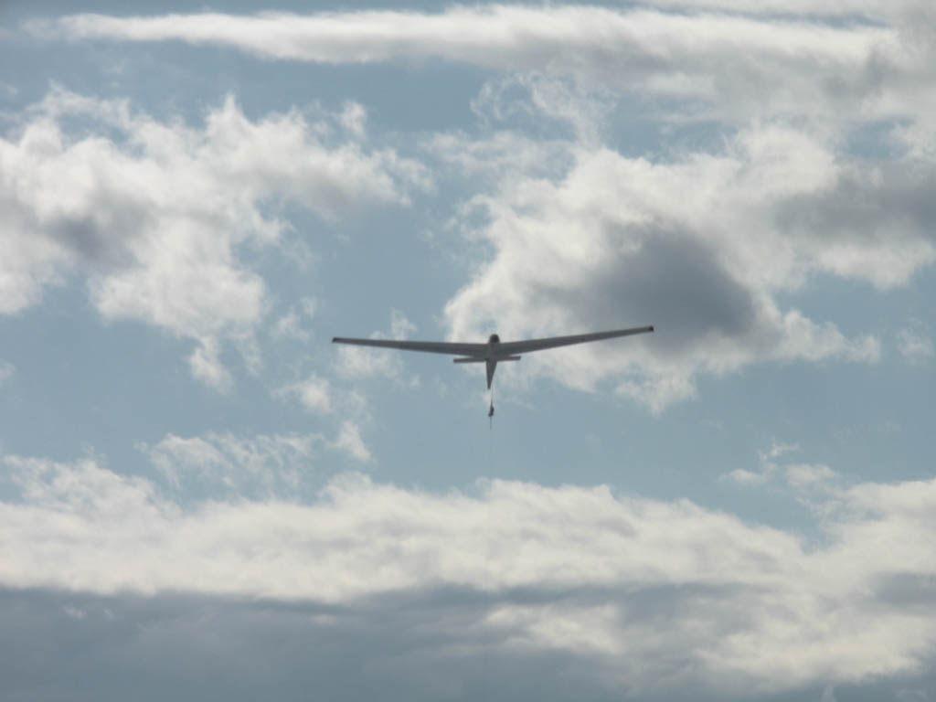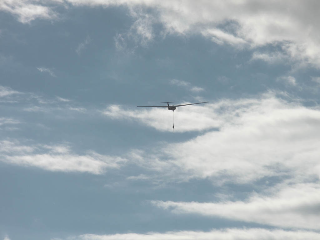 Spectra synthetic rope in 2012). The idea is that you put the winch at one end of the field and the glider at the other, and then the winch reels in the cable at 50 or 60 knots or so (wind dependent) and launches the glider. A typical release altitude is about 1/3 of the cable length. |